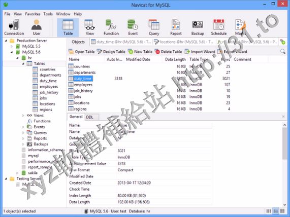 版本 5.1 或以上的數據庫服務器,並支持所有 MariaDB 對像類型。你可以直觀地設計數據庫結